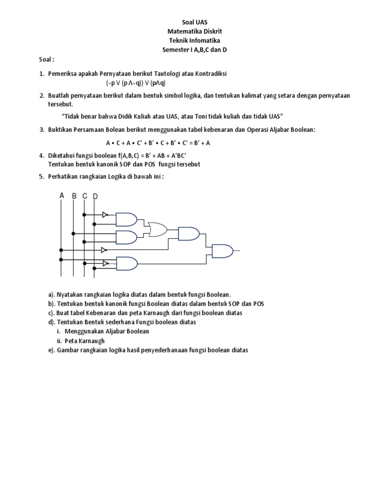 Semoga artikel ini dapat bermanfaatterimakasih atas kunjungan anda silahkan tinggalkan komentarsudah ada 3 komentar. Bank soal > ujian akhir semester. Uas matematika diskrit soal uas matdisk ti 2018 2019 pin di download soal dan pembahasan ujian akhir semester uas. Dalam beberapa hari kedepan pelajar sd, smp, sma akan menghadapi uas atau pas. Soal uas matematika smasmk kelas x xi xii semester 1 20172018 ini merupakan soal terbaru yang mungkin anda butuhkan sebagai referensi dalam menyusun soal uas jenjang sma mata pelajaran matematika wajib.