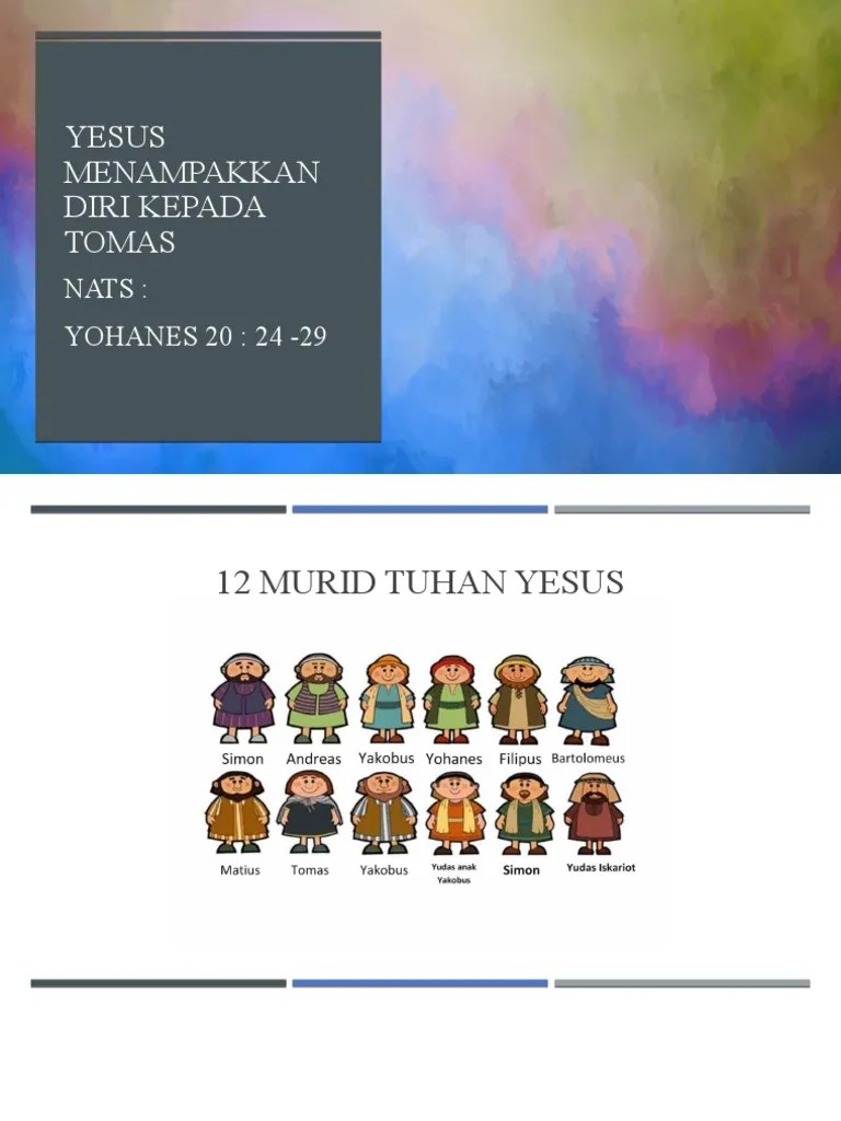 Rasul tomas tidak bersama mereka ketika yesus menampakkan diri. Bayangkan betapa hebohnya para murid ketika menceritakan kejadian itu kepada tomas! Yesus menampakkan diri pada mereka! Saudari/a terkasih dalam kristus tuhan, pada hari ini kita. Tuhan yesus tahu persis apa yang diperlukan oleh tomas, dan tuhan menjawab tomas sesuai kebutuhannya.